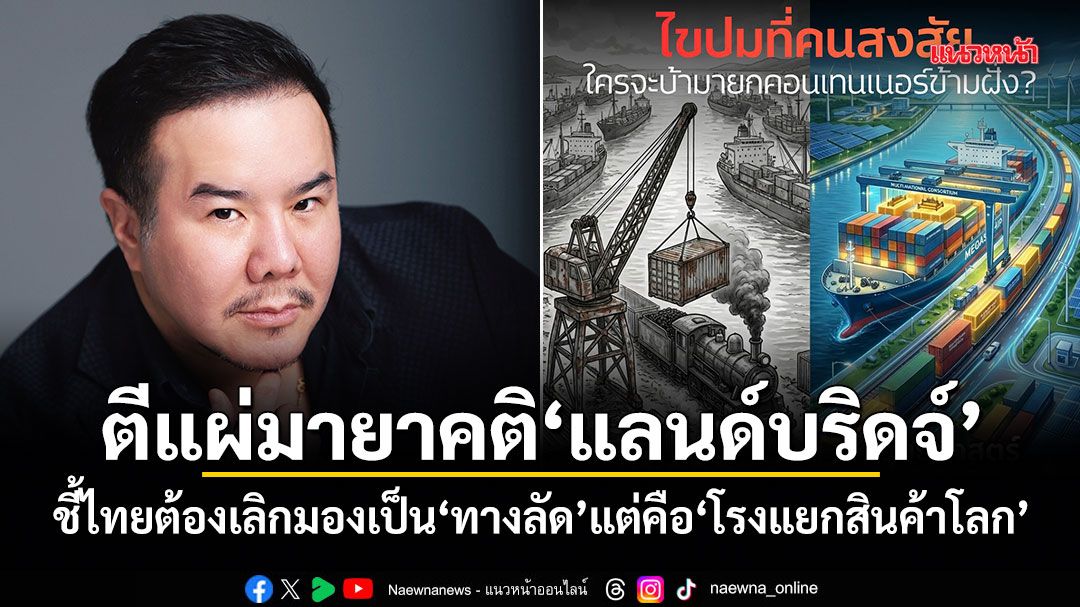 28 เมษายน 2569 ณัฏฐ์ มงคลนาวิน ผู้เชี่ยวชาญด้านการตลาดดิจิทัล โพสต์ข้อความผ่านเฟซบุ๊ก ระบุว่า Land Bridge vs. ขุดคลอง: มายาคติ "การยกตู้" และหมากยุทธศาสตร์ที่โลกถวิลหา