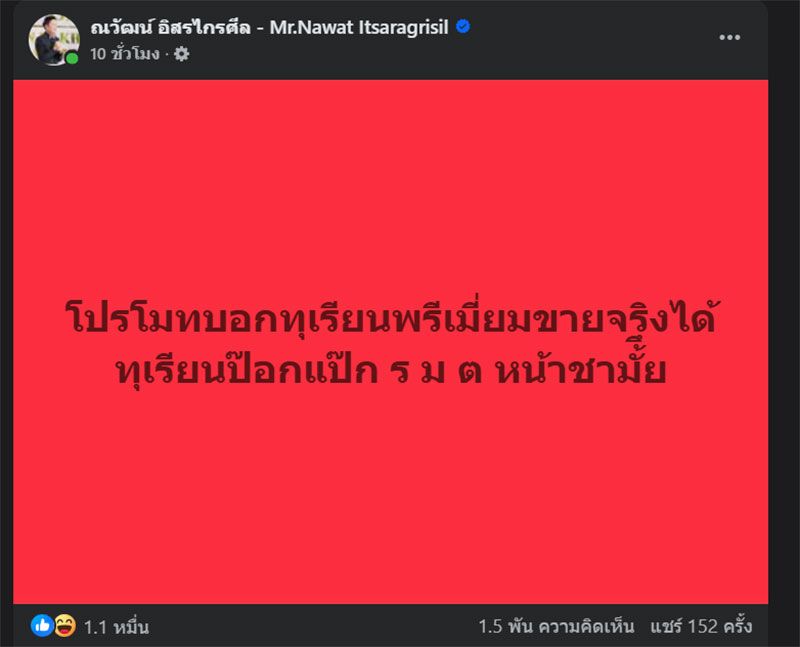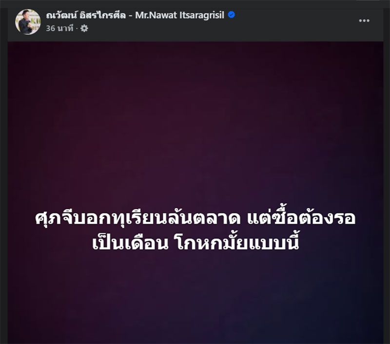เฟซบุ๊ก ณวัฒน์ อิสรไกรศีล - Mr.Nawat Itsaragrisil โพสต์ข้อความระบุว่า