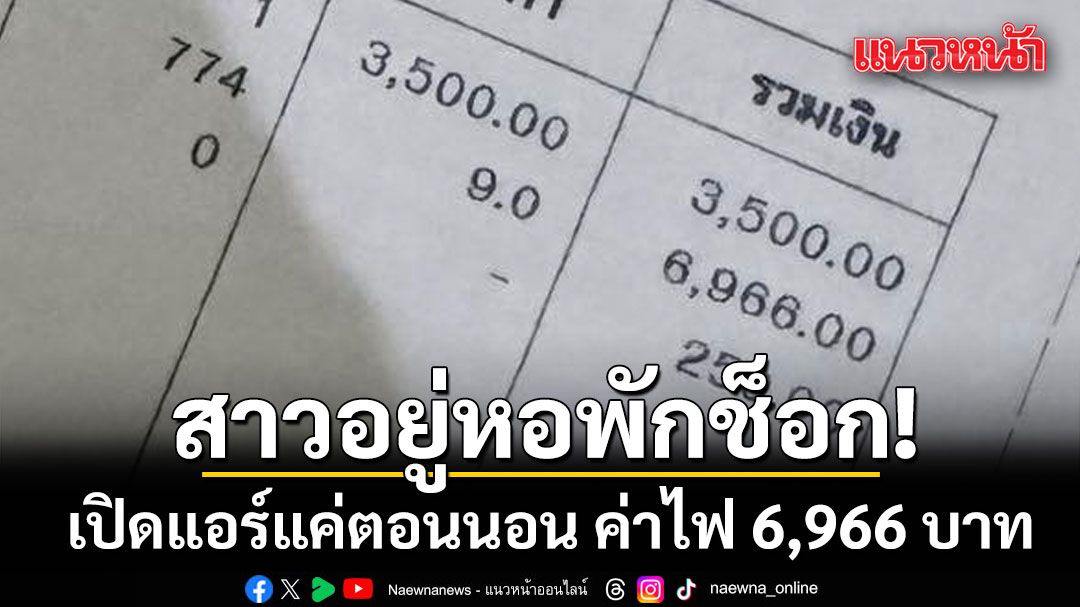 วันที่ 30 เมษายน 2569 หญิงสาวท่านหนึ่งโพสต์ในกลุ่มเฟซบุ๊กกลุ่มหนึ่ง พร้อมภาพบิลค่าหอพักรายเดือน ในหอพักแห่งหนึ่ง ราคาค่าไฟสูงถึง 6,966 บาท