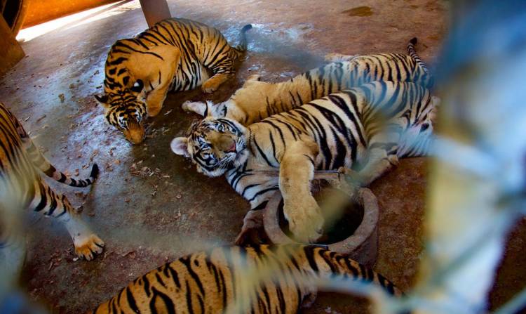 สภาพเสือซึ่งอยู่กันอย่างแออัดในกรงวัดเสือ ซึ่งมีในครอบครองรวม 147 ตัว รายงานล่าสุดระบุถึงความเชื่อมโยงระหว่างวัดและตลาดค้าสัตว์ป่าผิดกฎหมาย