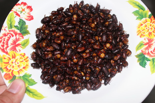 10 มิ.ย.59 เมื่อเวลา 21.00 น. ผู้สื่อข่าวรายงานว่า หลังจากในหลายพื้นที่ของ จ.สุรินทร์ มีฝนตกลงมาอย่างต่อเนื่อง ส่งผลดีกับชาวบ้านในพื้นที่ โดยเฉพาะบ้านยาง ม.1 ต.ยาง อ.ศีขรภูมิ จ.สุรินทร์ ที่ออกไปหาของป่า และสัตว์ต่างๆมาประกอบอาหาร และนำไปขายกิโลกรัมละ 250-300 บาท ลูกค้าส่วนใหญ่ที่มาซื้อ นำไปกินนั้น จะเป็นชาวบ้านทั่วไปที่ชื่นชอบรับประทานแมลงทอดกรอบ เนื่องจากแมงอีกนูน จะมีรสชาติ ที่อร่อย กรอบ และมัน ไม่เหมือนแมลงประเภทอื่นๆ