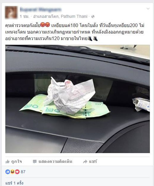 23 ก.ค. 59 กลายเป็นที่วิพากษ์วิจารณ์กันทั่วโลกสังคมออนไลน์ หลังจากที่เพจ "ควาย+Social" ได้โพสต์รูปภาพที่ได้ทำการแคปเจอร์จากเฟซบุ๊กของพริตตี้สาวคนหนึ่ง ที่ได้โพสต์รูปภาพ ภายหลังจากถูกเจ้าหน้าที่ตำรวจออกใบสั่งในข้อหาขับรถเร็วเกินกว่ากฎหมายกำหนด พร้อมระบุข้อความว่า "คุณตำรวจตบกันมั้ย เหยียบแค่ 180 โดนใบสั่ง ทีวันอื่นเหยียบ 200 ไม่เห็นจะโดน บอกความเร็วเกินกฎหมายกำหนด ทีหลังออกกฎหมายด้วย อย่าเอารถที่ความเร็วเกิน 120 มาขายในไทย"