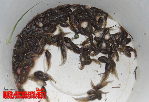 24 ก.ค.59 ผู้สื่อข่าวรายงานว่า ที่ทุ่งนาท้ายหมู่บ้านเอือด ต.ท่าตูม อ.ท่าตูม จ.สุรินทร์ ได้มีชาวบ้านกลุ่มหนึ่ง เดินทางมาจากบ้านโพนดอน ต.โพนโก อ.สนม จ.สุรินทร์ ซึ่งเป็นพื้นที่ใกล้เคียงกัน พร้อมด้วยอุปกรณ์ จับในการจับลูกอ็อด กบ เขียด อาทิ สวิง ตาข่าย ถังพลาสติก สำหรับนำมาใส่ ลูกอ๊อด กบ เขียด
