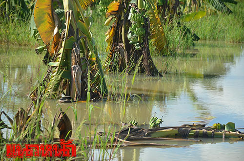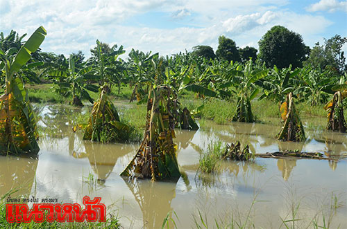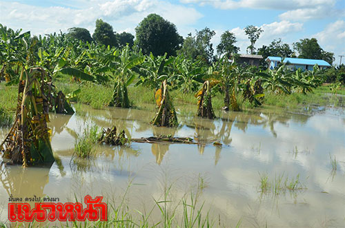 สำหรับการปลูกกล้วยน้ำว้าเป็นอีกวิธีหนึ่งที่เกษตรกรนำมาปลูกทดแทนการทำนาในช่วงที่ประสบปัญหาภัยแล้ง โดยเกษตรกรปลูกกล้วยน้ำว้าในพื้นที่ซึ่งเคยทำนา โดยกล้วยน้ำว้าเจริญเติบโตและมีผลใกล้แก่เต็มที่ แต่หลังจากฝนที่ตกชุกส่งผลให้น้ำฝนท่วมขังพื้นที่ปลูกกล้วยน้ำว้าซึ่งเป็นพื้นลุ่มต่ำ ไม่สามารถระบายน้ำออกได้ ส่งผลให้กล้วยน้ำว้าที่ปลูกไว้เริ่มเสียหายจากการถูกน้ำท่วมขังเป็นเวลานาน