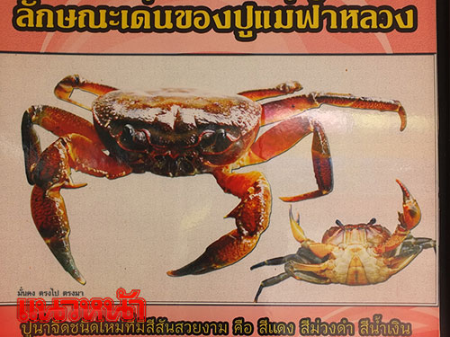 1 ก.ย.59 ผู้สื่อข่าวรายงานจากจังหวัดเชียงราย ว่าในปัจจุบันชาวบ้านที่หมู่บ้านแสนใจพัฒนา ม.22 ต.แม่สลองใน อ.แม่ฟ้าหลวง จ.เชียงราย ได้ร่วมกับโรงเรียนดอยแสนใจ (ตชด.อนุสรณ์) อนุรักษ์พื้นที่ลำห้วยแม่แสลบ ซึ่งเป็นลำห้วยน้ำจืดธรรมชาติที่ไหลผ่านป่าเขาในเขตหมู่บ้าน เนื่องจากลำห้วยแม่แสลบเป็นที่อาศัยของ "ปูแม่ฟ้าหลวง" ซึ่งเป็นปูหายากที่อาศัยและมีลักษณะอยู่ในลำห้วยแม่แสลบที่ไหลผ่านหมู่บ้านนี้เท่านั้น โดยเป็นปูขนาดเล็ก กว้างระหว่างกระดองประมาณ 3-4 ซ.ม. ลักษณะสีสันของกระดองและขามีความสวยงามด้วย 5 สี คือ สีแดง ดำ น้ำเงิน ขาวและน้ำตาล ทำให้แปลกกว่าปูชนิดอื่นๆ