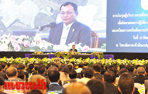 23 ก.ย. 59 ที่วิทยาลัยการอาชีวศึกษาปทุมธานี บางพูน จ.ปทุมธานี สำนักงานคณะกรรมการการอาชีวศึกษา (สอศ.) จัดประชุมผู้บริหารสถานศึกษาอาชีวศึกษาภาครัฐและเอกชน เพื่อติดตามผลการปฏิบัติราชการงบประมาณปี 2559 และเตรียมความพร้อมในการบริหารจัดการงบประมาณปี 2560 โดยมี พล.อ.ดาว์พงษ์ รัตนสุวรรณ รัฐมนตรีว่าการกระทรวงศึกษาธิการ (รมว.ศธ.) เป็นผู้มอบนโยบาย มีนายชัยพฤกษ์ เสรีรักษ์ เลขาธิการคณะกรรมการการอาชีวศึกษา (เลขาฯ กอศ.) นายสุเทพ ชิตยวงศ์ รองเลขาธิการคณะกรรมการการศึกษาขั้นพื้นฐาน (รองเลขาฯ กพฐ.) ในฐานะว่าที่เลขาฯ กอศ.คนใหม่ รวมถึงผู้บริหาร สอศ. ผู้บริหารวิทยาลัยอาชีวศึกษาภาครัฐและเอกชน กว่า 1 พันคน เข้าร่วม