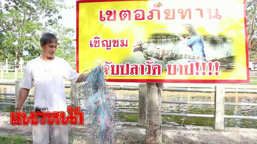 กระทั่งเมื่อช่วงสัปดาห์ก่อนได้รับแจ้งจากพระลูกวัด ว่า พบเบ็ดจำนวนหนึ่งมาปักวางตกบริเวณรอบๆบ่อ เพื่อใช้ตกปลาภายในบ่อ แต่ก็ไม่สามารถจับได้ และครั้งที่ 2 พบตะคัดจำนวน 2 ชุด มาวางอยู่ภายในบ่ออีกจึงนำของกลางเข้าแจ้งความลงบันทึกประจำวันที่ สภ.ลาดใหญ่ ซึ่งอยู่ตรงข้ามถนนกับบ่อปลา โดยเจ้าหน้าที่ตำรวจรับว่าจะสืบสวนติดตามผู้ก่อเหตุมาดำเนินคดี แต่จากนั้นก็ไม่มีอะไรคืบหน้า และยังคงมีกลุ่มวัยรุ่นเข้ามาขโมยปลาภายในบ่ออีก ทั้งที่เป็นเขตอภัยทานอีกถึง 4 ครั้ง