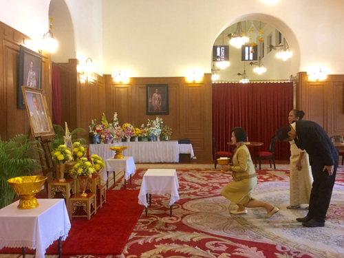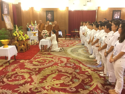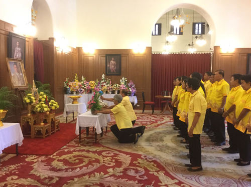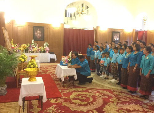 8 ต.ค.59 ที่ศาลาสหทัยสมาคม ในพระบรมมหาราชวัง ผู้สื่อข่าวรายงานบรรยากาศการลงนามถวายพระพรพระบาทสมเด็จพระเจ้าอยู่หัว ว่า ตั้งแต่เมื่อช่วงเช้าที่ผ่านมาได้มีคณะบุคคลและตัวแทนจากหน่วยงานภาครัฐและเอกชน ผู้นำท้องถิ่น และประชาชนจากทั่วทุกสารทิศ พร้อมใจนำพานพุ่มดอกไม้ แจกันดอกไม้ และสิ่งของต่างๆ มาทูลเกล้าฯ ถวาย พระบาทสมเด็จพระเจ้าอยู่หัว ด้วยความจงรักภักดีและสำนึกในพระมหากรุณาธิคุณที่ทรงงานเพื่อความอยู่ดีมีสุขแก่เหล่าพกนิกรตลอดมา พร้อมลงนามถวายพระพรขอให้ทรงมีพระพลานามัยแข็งแรงสมบูรณ์ยิ่งๆ ขึ้น หายจากพระอาการประชวรในเร็ววัน เพื่อเป็นร่มโพธิ์ร่มไทรของปวงชนชาวไทยตราบนานเท่านาน อาทิ กลุ่มพัฒนาบทบาทสตรี อ.ประโคนชัย จ.บุรีรัมย์ , คณะกรรมการบริหารโรงพยาบาลบางสะพาน จ.ประจวบคีรีขันธ์ , ชมรมลูกเสือชาวบ้าน จ.ชุมพร , คณะกรรมการสถานศึกษาขั้นพื้นฐาน สำนักงานเขตพื้นที่การศึกษาประถมศึกษา เขต 3 จ.ชลบุรี