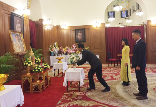 11 ต.ค.59 ที่ศาลาสหทัยสมาคม ในพระบรมมหาราชวัง สำนักพระราชวังเปิดให้ลงนามถวายพระพรพระบาทสมเด็จพระเจ้าอยู่หัว ตั้งแต่เวลา 08.30 - 16.30 น. ตลอดทั้งวันได้มีบุคคลสำคัญและคณะบุคคลจากหน่วยงานภาครัฐ เอกชน ตลอดจนประชาชนจากทั่วทุกสารทิศ พร้อมใจสวมเสื้อสีชมพูและเหลืองนำพานพุ่มดอกไม้ แจกันดอกไม้ และสิ่งของต่างๆ มาทูลเกล้าถวาย พร้อมลงนามถวายพระพรขอให้พระองค์ทรงหายจากพระอาการประชวรในเร็ววัน อาทิ พลเอกประยุทธ์ จันทร์โอชา นายกรัฐมนตรี และหัวหน้าคณะรักษาความสงบแห่งชาติ (คสช.) พร้อมคณะ คสช. คณะรัฐมนตรี (ครม.) ผู้บัญชาการเหล่าทัพ รวมทั้งคู่สมรส, นายมีชัย ฤชุพันธุ์ ประธานกรรมการร่างรัฐธรรมนูญ พร้อมคณะกรรมการร่างรัฐธรรมนูญ ,นายเหงียน เติ๊ด ถั่น เอกอัครราชทูตสาธารณรัฐสังคมเวียนดนาม ประจำประเทศไทย ,คณะผู้บริหารและครู โรงเรียนอนุบาลปะทิว (บางสนพิพิธราษฎร์บำรุง) จ.ชุมพร, คณะครูและนักเรียนโรงเรียนวัฒนราษฎร์ศึกษา ต.ประชาสุขสันต์ อ.ลานกระบือ จ.กำแพงเพชร,