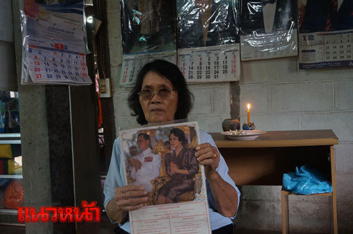 เมื่อไปถึงได้พบกับนางไพบูลย์ ดอกไม้ อายุ 73 ปี กำลังเช็ดถูทำความสะอาดภาพปฏิทินที่ห่อด้วยพลาสติกติดไว้ที่หัวเตียงนอน ข้างฝาบ้านและนำดอกไม้ ธูป เทียน กราบไหว้ภาพปฏิทินของในหลวงที่สะสมไว้บนหัวเตียงนอนซึ่งได้เก็บสะสมมาตั้งแต่ปี 2543 จนถึงปี 2559