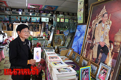 16 ต.ค. 59 ผู้สื่อขาวรานงานว่า คุณครูสนอง บำรุงราษฎร์ วัย 74 ปี อดีตครูสอนวิชาภาษาไทยโรงเรียนประชุมวิทยา อ.ลาดหลุมแก้ว จ.ปทุมธานี หลังเกษียณอายุราชการได้เปิดพื้นที่ของบ้านย่านอ.ลาดหลุมแก้วเป็นห้องสมุดชุมชนให้ผู้สนใจเข้าชื่นชมพระบารมี ภาพพระบรมฉายาลักษณ์ของพระบาทเด็จพระเจ้าอยู่หัว ในพระบรมโกศ ไว้โดยเฉพาะภาพพระราชกรณียกิจ ของพระบาทสมเด็จพระเจ้าอยู่หัว ในพระบรมโกศ ผ่านพระบรมฉายาลักษณ์ที่เก็บสะสมไว้กว่า 40 ปีความประทับใจ ถูกถ่ายทอดผ่านการเก็บสะสมภาพในพระราชอิริยาบถต่างๆ มีทั้งปฏิทินตั้งโต๊ะ โปสเตอร์ โปสการ์ด บางส่วนตัดจากหนังสือพิมพ์ นิตยสาร รวบรวมเป็นอัลบั้มภาพ เก็บเรียงไว้เต็มบ้าน