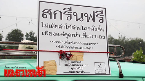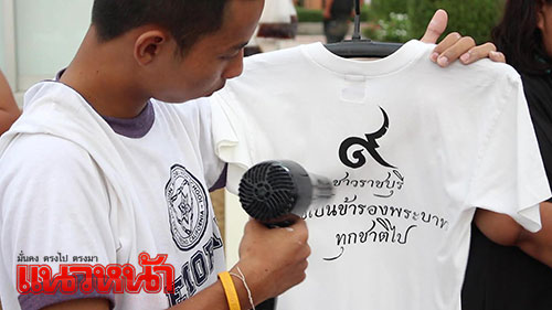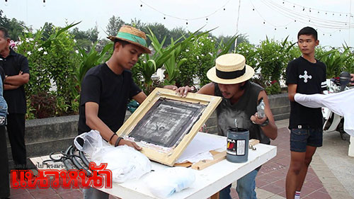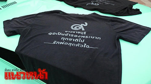 17 ต.ค.59 ผู้สื่อข่าวรายงานว่า นายศิริพงศ์ เรืองจันทร์ อายุ 30 ปี ชาวบ้านในตำบลบ้านไร่ อำเภอเมือง จังหวัดราชบุรี เป็นนักศึกษาในระดับชั้นปริญญาโท ชั้นปีที่ 3 มหาวิทยาลัยศิลปากร คณะจิตกรรมประติมากรรมและภาพพิมพ์ ได้รวมกลุ่มกับเพื่อนๆในนามศิษย์เก่าวิทยาลัยเทคนิคราชบุรี จำนวน 11 คน นำรถโมบายติดป้ายประชาสัมพันธ์ สกรีนฟรี ไม่เสียค่าใช้จ่ายใดๆทั้งสิ้นเพียงแค่คุณนำเสื้อมาเอง เราทำดีเพื่อพ่อหลวงของเรา” ออกบริการสกรีนเสื้อลาย สัญญาลักษณ์อักษรเลข 9 ระบุข้อความว่า “ชาวราชบุรี ขอเป็นข้ารองบาททุกชาติไป รักพ่อสุดหัวใจ” บริการฟรีให้กับประชาชน ไปตามจุดต่างๆ ของจังหวัดราชบุรี เพื่อร่วมถวายความอาลัยแด่พระบาทสมเด็จพระปรมินทรมหาภูมิพลอดุลยเดช โดยมีประชาชนชาวจังหวัดราชบุรีต่างนำเสื้อสีขาวและสีดำมาขอรับบริการจำนวนมาก