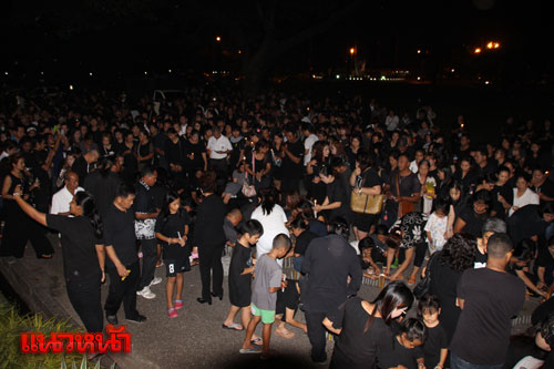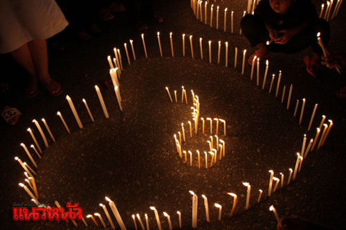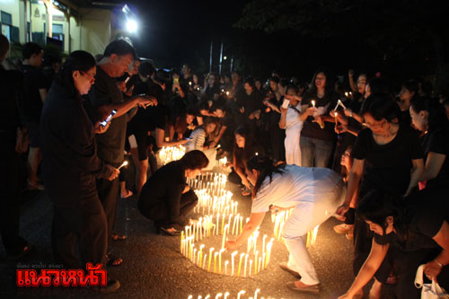 โดยมีการปักเทียนเป็นรูปหัวใจ และด้านในมีสัญญาลักษณ์เลข 9 อยู่ตรงกลางหัวใจ หน้าพระบรมฉายาลักษณ์ สื่อความหมายในหลวงจะอยู่ในใจปวงชนชาวพังงา พร้อมร่วมกันร้องเพลงสรรเสริญพระบารมี หลังจบเพลงก็เกิดสายฝนตกลงมาโปรยปรายเสมือนน้ำมนต์ หลั่งลงมาจากฟากฟ้า ทำให้ประชาชนที่มาร่วมจุดเทียนรู้สึกปลาบปลื้มใจอย่างที่สุด และจะมีการจุดเทียนแบบนี้กันทุกคืนเป็นเวลา 1 เดือน