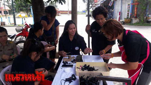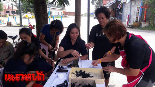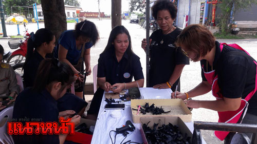 โดยบรรยากาศตลอดทั้งวันพบว่า มีประชาชนให้ความสนใจทยอยเดินทางมาลงชื่อเพื่อขอรับริบบิ้นฟรีจำนวนมาก ขณะที่เจ้าหน้าที่ กศน.อำเภอบัวเชด ต่างเร่งช่วยกันทำริบบิ้น เพื่อให้ทันกับความต้องการของประชาชน ส่วนการย้อมผ้าดำนั้นประชาชนชาว อ.บัวเชด สามารถนำผ้ามาย้อมได้ฟรีที่สำนักงาน กศน.อำเภอบัวเชด ซึ่งจะเปิดบริการตั้งแต่วันที่ 17-18 ต.ค.2559 นี้