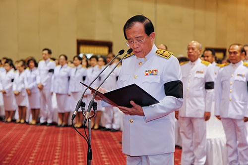 พระบาทสมเด็จพระปรมินทรมหาภูมิพลอดุลยเดช มหิตลาธิเบศรรามาธิบดี จักรีนฤบดินทร สยามินทราธิราช บรมนาถบพิตร เสด็จเถลิงถวัลยราชสมบัติเมื่อวันที่ 9 มิถุนายน 2489 ในพระราชพิธีบรมราชภิเษก เมื่อวันที่ 5 พฤษภาคม 2493 ได้พระราชทานพระปฐมบรมราชโองการว่า “เราจะครองแผ่นดินโดยธรรม เพื่อประโยชน์สุขแห่งมหาชนชาวสยาม” ตลอดเวลาได้ทรงปฏิบัติพระราชกรณียกิจน้อยใหญ่ เพื่อความผาสุกของอาณาประชาราษฎร์ รวมเวลาที่ทรงดำรงอยู่ในสิริราชสมบัติได้ 70 ปี