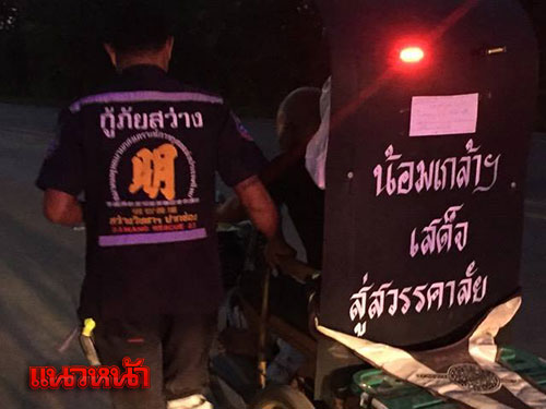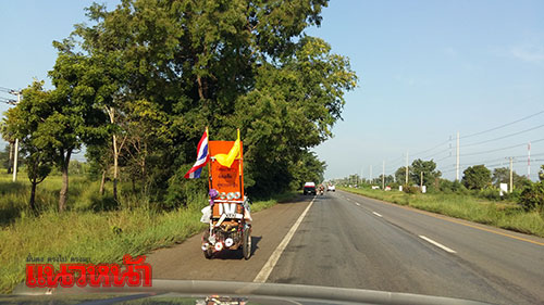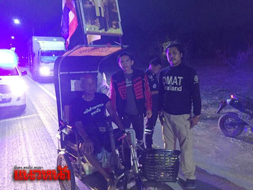 ทั้งนี้ นายปาน หมื่นโยชน์ ได้ออกเดินทางจากบ้านพักตั้งแต่ช่วงบ่ายวันที่ 15 ต.ค.59 ที่ผ่านมา ใช้เส้นทางลัดจาก อ.ปะคำเข้า อ.โนนสุวรรณ จ.บุรีรัมย์ เพื่อเข้าสู่ถนนสาย 24 โชคชัย-เดชอุดม ต่อไปยังถนนมิตรภาพ แวะพักค้างคืนตามตู้ยามตำรวจในเส้นทางผ่าน มีเจ้าหน้าที่มูลนิธิกู้ภัยฯ ประสานส่งต่อดูแลไปตามเส้นทาง