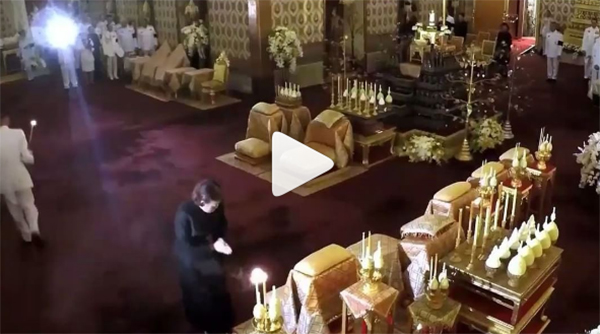17 ต.ค. 59 ผู้สื่อข่าวรายงานว่า ในสังคมโลกออนไลน์มีการเผยแพร่คลิปบันทึกการถ่ายทอดสด สมเด็จพระเทพรัตนราชสุดาฯ สยามบรมราชกุมารี เสด็จฯ ทรงบำเพ็ญพระราชกุศลพระพิธีธรรมสวดพระอภิธรรมพระบรมศพ พระบาทสมเด็จพระปรมินทรมหาภูมิพลอดุลยเดช ณ พระที่นั่งดุสิตมหาปราสาท ในพระบรมมหาราชวัง โดยในคลิปดังกล่าว สมเด็จพระเทพฯ ไม่ทรงกราบที่พระแท่น แต่ได้เสด็จฯ อ้อมไปทรงกราบลงแทบพื้นหน้าพระบรมโกศ พระบรมศพ แทน สร้างความความตื้นตันให้แก่ผู้ที่ได้รับชมจนมีการแชร์ต่อเป็นจำนวนมาก