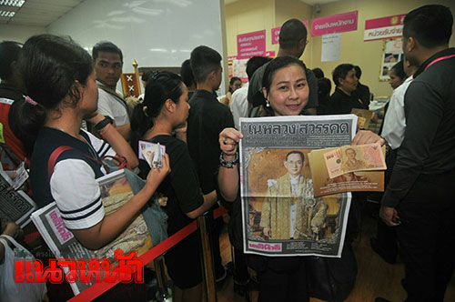 18 ต.ค.59 ที่ ธนาคารออมสินสำนักงานใหญ่ ได้เปิดให้ประชาชนแลกธนบัตรที่ระลึก ล็อตสุดท้าย 90,000 ชุด โดยธนบัตรที่ระลึกที่เปิดให้แลกนั้น ได้จัดทำขึ้นในโอกาสเฉลิมพระชนมพรรษาครบ 7 รอบ 84 พรรษา เมื่อปี พ.ศ.2554 ซึ่งมี 2 แบบ คือ แบบธนบัตรกับแผ่นพับเป็นซองใส่ธนบัตร จำหน่ายชุดละ 200 บาท และแบบธนบัตรพร้อมกรอบอคริลิคและหีบเพลง จำหน่ายชุดละ 500 บาท ธนาคารออมสินจึงเปิดให้ประชาชนทั่วไปแลกได้ หรือจนกว่าธนบัตรชุดนี้จะหมด โดยจำกัดการแลกจำนวนคนละไม่เกิน 5 ชุด สำหรับแบบชุดละ 200 บาท และจำกัดชุดหีบเพลง คนละไม่เกิน 1 ชุด และแลกได้เฉพาะที่ธนาคารออมสินสำนักงานใหญ่