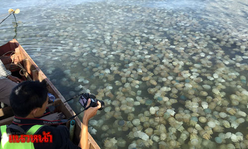 แมงกะพรุนถ้วยหลากสีนับแสนตัวผุดหาดพลอยแดง-หาดมุดแก้ว รองผวจ.ตราดลงเรือสำรวจ ด้านชาวประมงเตรียมเรือรับท่องเที่ยว ส่วนททท.ตราด เร่งประชาสัมพันธ์ชวนชมปรากฏการณ์
