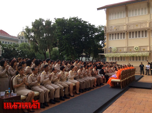 ทั้งนี้ม.ล.ปนัดดา ได้ให้สัมภาษณ์ภายหลังเสร็จพิธีว่า สำหรับแนวพระราชดำริที่ข้าราชการจะต้องน้อมนำปฏิบัตินั้น หัวใจสำคัญคือเรื่องความรักสมัครสมาน สามัคคี อันเป็นที่มาของพระบรมราโชวาทในเรื่องความรู้รักสามัคคี ให้คนไทยมีความรักกันเพื่อที่จะดำรงความเป็นปึกแผ่นของแผ่นดิน ความเป็นประเทศไทยใต้ร่มพระบารมี ซึ่งข้าราชการทุกคนทุกหมู่เหล่าน้อมนำสู่การปฏิบัติมาโดยตลอด ชีวิตการทำงานของเราก็จะปฏิบัติเช่นนี้ตลอดไป โดยตลอด7 วันที่ผ่านมาประชาชนทั้งในกทม.และต่างจังหวัดหลายคนบอกว่าถึงแม้จะไปร่วมพิธีที่จัดขึ้นในแต่ละจังหวัดแล้ว แต่ก็ยังรู้สึกว่าห่างไกลพระองค์ท่านจึงตัดสินใจเข้ามาในกทม.เพื่อที่จะมากราบถวายบังคมบริเวณด้านหน้าพระบรมมหาราชวัง ซึ่งคนไทยมีความทุกข์โศก แต่คนไทยก็ยังมีความรักกัน เพราะมีพระองค์ท่านเป็นจุดศูนย์รวมดวงใจคนไทยมาตลอดในระยะเวลาอันยาวนาน เราคนไทยทุกคนต้องให้กำลังใจแก่กัน เป็นที่ปรึกษาหารือเพื่อที่จะดำรงชีวิตและประเทศต่อไปให้ได้