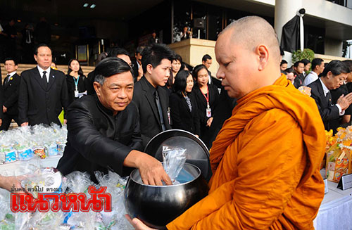 19 ต.ค. 59 ที่รัฐสภา นายพรเพชร วิชิตชลชัย ประธานสภานิติบัญญัติแห่งชาติ (สนช.) ให้สัมภาษณ์ภายหลังจากการเป็นประธานในพิธีประธานในพิธีทำบุญตักบาตรพระสงฆ์ 89 รูป เพื่อน้อมเกล้าน้อมกระหม่อมถวายเป็นพระราชกุศลแด่พระบาทสมเด็จพระปรมินทรมหาภูมิพลอดุลยเดช ว่า กิจกรรมดังกล่าว แสดงถึงความจงรักภักดี และแสดงถึงความอาลัยในพระบาทสมเด็จพระเจ้าอยู่หัวฯ ซึ่งได้รับความร่วมมือเป็นอย่างดี และที่น่ายินดีก็คือบรรดาสมาชิกฯ ต่างก็ซาบซึ้งในพระมหากรุณาธิคุณและมาร่วมแรงร่วมใจกันอย่างคับคั่ง โดยทาง สนช. ก็จะน้อมนำพระปฐมบรมราชโองการที่ว่า ‘เราจะครองแผ่นดินโดยธรรม เพื่อประโยชน์สุขแห่งมหาชนชาวสยาม’ ซึ่งเป็นหลักที่พระองค์ในฐานะผู้นำหมายเลขหนึ่งประเทศ ที่ปกครองแผ่นดินโดยธรรม ก็หมายความว่า ท่านปกครองคนอื่นโดยธรรม คนอื่นๆที่ลดหลั่นลงมาหรือผู้ที่ได้รับพระบรมราชโองการ จะต้องปฏิบัติหน้าที่เฉกเช่นเดียวกับพระองค์ท่าน นั่นก็คือการยึดหลักความเป็นธรรมและพระองค์ท่านจะเน้นเรื่องความผาสุกของประชาชนชาวสยาม ซึ่ง สนช. ก็ถือเป็นข้าราชการในพระองค์พระบาทสมเด็จพระเจ้าอยู่หัวฯ ซึ่งจะต้องปฏิบัติตนตามแบบอย่าง