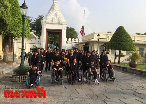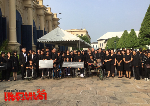 นายบุญยาม เสาจันทร์ เลขาธิการอมูลนิธิคนพิการไทย พิการขารีบเนื่องจากเป็นโรคโปลิโอมาแต่กำเนิด กล่าวว่า สำหรับตนมีความซาบซึ้งในพระมหากรุณาธิคุณของพระบาทสมเด็จพระปรมินทรมหาภูมิพลอดุลยเดช เนื่องจากพระองค์คอยดูแลเอาใจใส่คนพิการไม่ว่าจะอยู่ต่างจังหวัดหรือชายขอบท่านก็ยังไม่เคยทอดทิ้ง และยังให้โอกาสทางการศึกษา ทำให้คนพิการมีงานทำช่วยเหลือตัวเองได้ และมีศักยภาพทางสังคมได้มีโอกาสแสดงความสามารถไปสู้ระดับโลกทั้งด้านกีฬาและทักษะต่าง ๆ ทั้งนี้ หลังวันที่ 28 ต.ค.นี้ทางมูลนิธิจะพาผู้พิการจังหวัดละ 30 คน เดินทางมาเข้าถวายความอาลัย ณ พระที่นั่งดุสิตมหาปราสาท ในพระบรมมหาราชวัง
