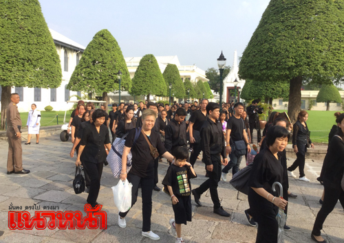 ขณะที่ นางบุญนาค บุญญมาโนชญ์ อายุ 67 ปี ชาว ต.คูคต อ.ลำลูกกา จ.ปทุมธานี กล่าวว่าตนและนางพัชรกร ปานนก อายุ 67 ปี ซึ่งเป็นเพื่อนบ้านกันได้เดินทางออกจากบ้านตั้งแต่ 15.00 น.ของวันที่ 18 ต.ค. และมาถึงหน้าพระบรมมหาราชวังช่วง 21.00 น. เพื่อมาถวายความอาลัยที่พระองค์ดูและช่วยเหลือประชาชนอย่างดียิ่งในทุกๆ ด้าน