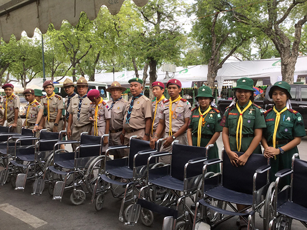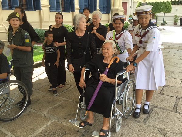 ทั้งนี้ กระทรวงพัฒนาสังคมและความมั่นคงของมนุษย์ (พม.) บริจาครถเข็นนั่ง 100 คัน เพื่อให้ผู้สูงอายุ เด็กเล็ก นั่งเข้ามาลงนามถวายความอาลัย
