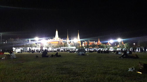 21 ต.ค.59 วันนี้เป็นการจัดระบบคิว โดยมีประชาชนประมาณ 200-300 คน มานั่งรอรับบัตรคิวตั้งแต่เวลา 05.00 น. โดยล่าสุด ประชาชนเข้าคิวเต็มพื้นที่เต็นจำนวนหลายพันคน โดยมีเก้าอี้บริการให้นั่งตลอดความยาวของเต็น
