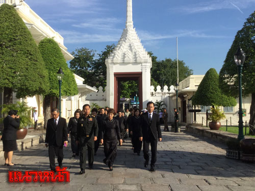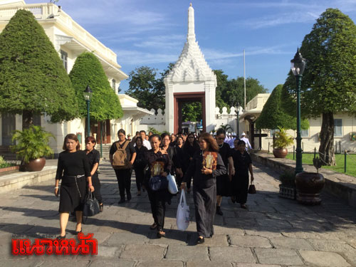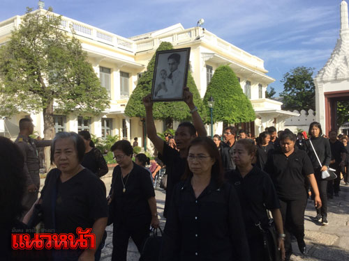 21 ต.ค.59 ผู้สื่อข่าวรายงานบรรยากาศลงนามถวายความอาลัย ที่บริเวณหน้าประตูวิเศษไชยศรี พระบรมมหาราชวัง ประชาชนจากทุกสาขาอาชีพได้เดินทางมาเข้าแถวรอเข้าถวายสักการะเบื้องหน้าพระบรมฉายาลักษณ์ และลงนามสมุดหลวงถวายความอาลัยพระบรมศพ พระบาทสมเด็จพระปรมินทรมหาภูมิพลอดุลยเดช มหิตลาธิเบศรรามาธิบดี จักรีนฤบดินทร สยามินทราธิราช บรมนาถบพิตร ที่ศาลาสหทัยสมาคม ในพระบรมราชวัง เป็นวันที่ 7 อย่างเนืองแน่น