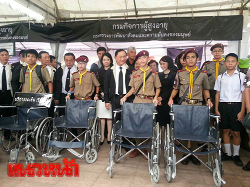 โดยพล.ต.อ.อดุลย์ กล่าวว่า ได้จัดตั้งศูนย์บริการเพื่อช่วยเหลือประชาชน โดยเฉพาะบริการรถเข็นวิลแชร์ไว้สำหรับคนพิการและผู้สูงอายุ มีการรวมกลุ่มผู้สูงอายุสาธิตการทำริบบิ้น รวมถึงมีการย้อมผ้าสีดำเพื่อแจกจ่ายให้กับประชาชน ซึ่งในวันพรุ่งนี้ (22ต.ค.) คาดว่าจะมีผู้ร่วมเข้ามาร้องเพลงสรรเสริญพระบารมีเป็นจำนวนมาก จึงได้จัดเตรียมเก้าอี้วิลแชร์ไว้เพิ่มอีก 100 คัน จากเดิมมีอยู่แล้ว 120 คัน เพื่อให้เพียงพอต่อประชาชนที่เข้ามาร่วมถวายความอาลัยแด่พระบาทสมเด็จพระเจ้าอยู่หัวภูมิพลอดุลยเดช ทั้งนี้ ได้มีการประชาสัมพันธ์เพื่อให้ประชาชนทราบว่ามีจุดบริการ “พม.เพื่อพ่อหลวง” บริเวณดังกล่าว