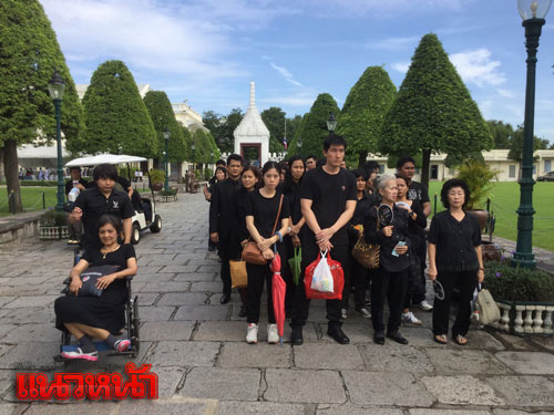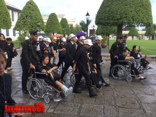 ขณะที่ นายปาน หมื่นโยชน์ ชาว จ.บุรีรัมย์ ผู้พิการวัย 84 ปี โยกรถเข็นคนพิการพระราชทาน มุ่งหน้าเข้าสู่กรุงเทพมหานคร เพื่อสักการะพระบรมศพพระบาทสมเด็จพระปรมินทรมหาภูมิพลอดุลยเดช ล่าสุด มีรายงานข่าวว่า ลุงปาน เดินทางถึงกระทรวงบคมนาคม แล้ว และจะเข้าถวายสักการะเบื้องหน้าพระบรมฉายาลักษณ์ และลงนามสมุดหลวงถวายความอาลัยพระบรมศพพระบาทสมเด็จพระปรมินทรมหาภูมิพลอดุลยเดช ที่ศาลาสหทัยสมาคม ในพระบรมราชวัง ด้วย
