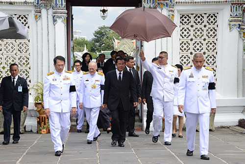 22 ต.ค. 59 สมเด็จพระอัครเสนาบดีเดโช ฮุนเซน นายกรัฐมนตรีแห่งราชอาณาจักรกัมพูชา ได้เดินทางมาวางพวงมาลาถวายราชสักการะพระบรมศพ พระบาทสมเด็จพระปรมินทรมหาภูมิพลอดุลยเดช ณ พระที่นั่งดุสิต มหาปราสาท จากนั้น ลงนามถวายความอาลัย ณ ศาลาว่าการพระราชวัง ในพระบรมมหาราชวัง