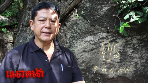 ด้านนายสุรินทร์ เหลือลมัย วัย 79 ปี อดีตอาจารย์ใหญ่โรงเรียนอนุบาลจอมบึง และเป็นผู้ที่ประพันธ์ถึงประวัติความเป็นมาของอำเภอจอมบึง เปิดเผยว่า ถ้ำจอมพล ตั้งอยู่ที่ตำบลจอมบึง อำเภอจอมบึง อยู่ภายในบริเวณสวนรุกชาติจอมพล ติดกับมหาวิทยาลัยราชภัฎหมู่บ้านจอมบึง ห่างจากตัวเมืองราชบุรี ประมาณ 30 กิโลเมตร ถ้ำจอมพล เดิมมีชื่อว่า "ถ้ำมุจลินท์" จากหลักฐานจึงเป็นที่ชัดเจนว่าชื่อ "ถ้ำจอมพล" นั้น เป็นชื่อพระราชทาน จากหลักฐานในหนังสือราชกิจจานุเบกษา กรุงเทพมหานครในนามมหาราชวัง ร.ศ. 114 บันทึกประวัติไว้ว่า สมเด็จพระปิยมหาราช ร.5 ทรงเสด็จพระราชดำเนินประทับที่เขากลางเมืองเพื่อหยุดประทับเสวยเช้าที่เชิงเขา เสวยแล้วทรงพระราชดำเนินขึ้นประพาสบนเขาแล้วประทับที่ปากถ้ำ โดยทรงพระราชดำริที่จะให้มีสิ่งสำคัญเป็นเครื่องหมายที่ระลึกถึงการเสด็จพระราชดำเนินครั้งนี้ไว้สืบไปสิ้นกาลนาน จึงได้ทรงพระอักษรไว้ที่ปากถ้ำ คือ จ.ป.ร. เป็นอักษรพระปรมาภิไธย 114 หมายปีที่เสด็จประพาสและทรงพระอักษร และพระราชทานนามถ้ำว่า "ถ้ำจอมพล" โปรดเกล้าให้ช่างสลักศิลาตามอักษรแล้วทรงฉายพระรูปที่ปากถ้ำนั้น