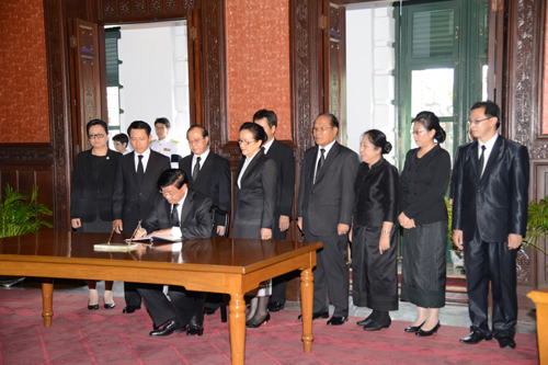 24 ต.ค.59 เมื่อเวลา 14.20 น.นายทองลุน สีสุลิด นายกรัฐมนตรีสาธารณรัฐประชาธิปไตยประชาชนลาว และนางนาลี สีสุลิด ภริยา วางพวงมาลาถวายสักการะพระบรมศพ และลงนามถวายความอาลัยพระบาทสมเด็จพระปรมินทรมหาภูมิพลอดุลยเดช มหิตลาธิเบศรรามาธิบดี จักรีนฤบดินทร สยามินทราธิราช บรมนาถบพิตร ณ พระที่นั่งดุสิตมหาปราสาท และศาลาว่าการสำนักพระราชวัง ในพระบรมมหาราชวัง
