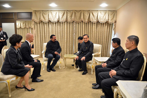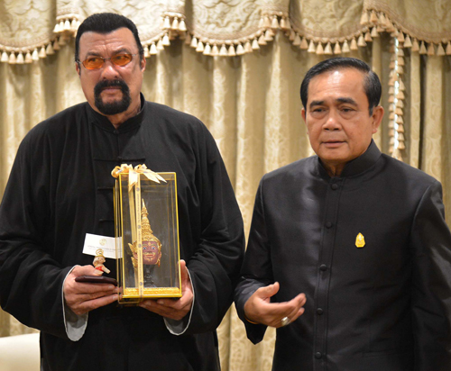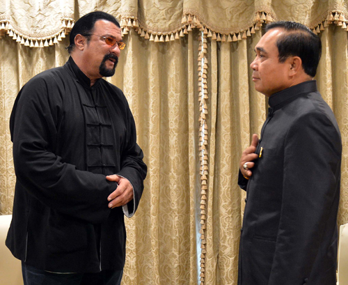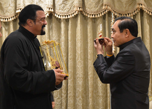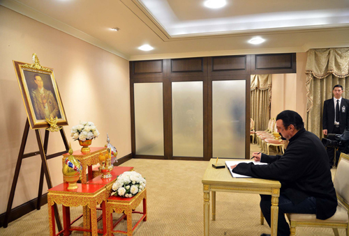 25 ต.ค.59 ที่ทำเนียบรัฐบาล นายสตีเวน ซีกัล นักแสดง และผู้ผลิตภาพยนตร์ เข้าเยี่ยมคารวะ พล.อ.ประยุทธ์ จันทร์โอชา นายกรัฐมนตรี และหัวหน้าคณะรักษาความสงบแห่งชาติ (คสช.) เนื่องในโอกาสที่มาร่วมแสดงความอาลัยแด่พระบาทสมเด็จพระปรมินทรมหาภูมิพลอดุลยเดช พร้อมกันนี้ยังได้มีการหารือเรื่องภาพยนตร์ที่จะเข้ามาผลิตในประเทศไทยในปี 60 เพื่อจะได้เผยแพร่พระมหากรุณาธิคุณในพระบาทสมเด็จพระปรมินทรมหาภูมิพลอดุลยเดช ที่มีต่อประชาชนชาวไทยและประชาชนทั่วโลกได้รับทราบ