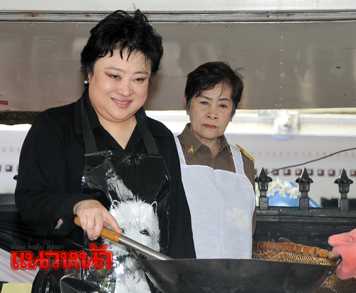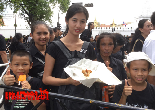ขณะที่ น.ส.ณัฏฐา กันพุ่ม อายุ 28 ปี ชาวปากเกร็ด จ.นนทบุรี ซึ่งเดินทางมาพร้อมน้าและหลานๆ กล่าวภายหลังได้รับข้าวเหนียวไก่ทอด ที่พระเจ้าวรวงศ์เธอ พระองค์เจ้าโสมสวลี พระวรราชาทินัดดามาตุ ทรงทอดประทานแก่ประชาชน ว่า รู้สึกปลื้มใจอย่างมากที่ได้เห็นพระองค์มีความเมตตากับประชาชน ถึงแม้อากาศร้อน ท่านก็ยังเสด็จมาทอดไก่ประทาน ซึ่งตนและหลานได้ลองชิมแล้ว ไก่รสชาติอร่อยมาก ส่วนข้าวเหนียวก็นิ่มดี นับเป็นพระมหากรุณาธิคุณอย่างหาที่สุดมิได้