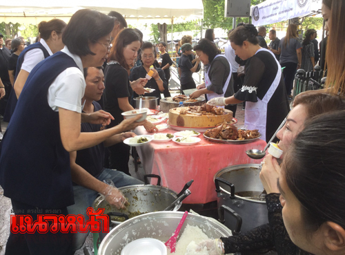 นอกจากนี้ ยังมีหน่วยงานต่างๆ นำอาหารมาช่วยเสริมอีกจำนวนมาก เช่น ข้าวขาหมูร้านเจ้หมวยดำเนิน จำนวน 2,000 จาน เดอะมอลล์ กรุ๊ป นำไอศครีมโบราณ จำนวน 5,000 แท่ง ผลไม้รวม จำนวน 2,000 ชุด ร้านน้ำพริกนิตยาบางลำพู นำก๋วยเตี๋ยวหลอด ก๋วยเตี๋ยวลุยสวน มาร่วมแจกจ่ายให้กับประชาชนที่เดินทางมาร่วมแสดงความอาลัยพระบาทสมเด็จพระปรมินทรมหาภูมิพลอดุลยเดช ที่ศาลาสหทัยสมาคม ในพระบรมมหาราชวัง