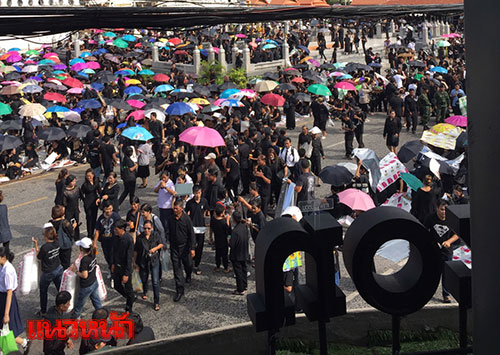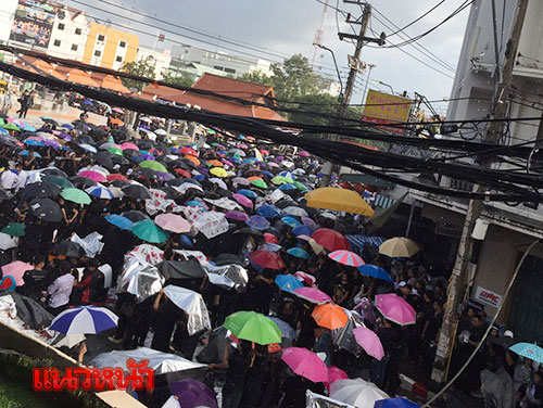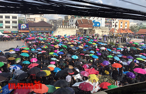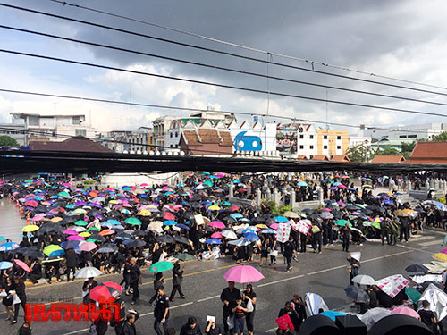 ทั้งนี้ ผู้สื่อข่าวรายงานว่า ถึงแม้ว่าช่วงเย็นที่ผ่านมาจะมีฝนตกลงมาอย่างหนัก แต่พสกนิกรยังปักหลักและยังทยอยเดินทางกันเข้ามากันอย่างต่อเนื่องเพื่อร่วมกิจกรรมในค่ำคืนนี้
