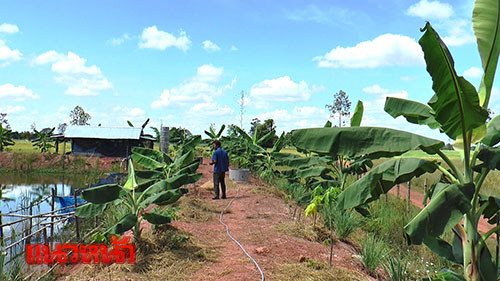 ตลอดจนได้เข้ารับการอบรมมาตลอด จึงได้น้อมนำมาปฏิบัติใช้ในพื้นที่ของตนเองที่มีอยู่ 17 ไร่ โดยมีการแบ่งพื้นที่เป็น 3 ส่วน คือ ขุดบ่อเพื่อกักเก็บน้ำจำนวน 2 ไร่ พื้นที่ปลูกพืชผัก ผลไม้ ไม้ยืนต้น ที่อยู่อาศัย โรงเรือนเลี้ยงสัตว์จำนวน 8 ไร่ และที่เหลืออีก 7 ไร่ ใช้ในการปลูกข้าวไว้รับประทาน