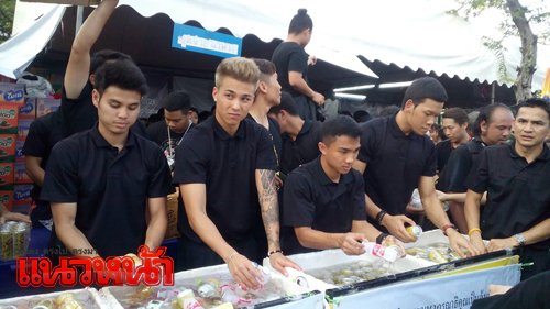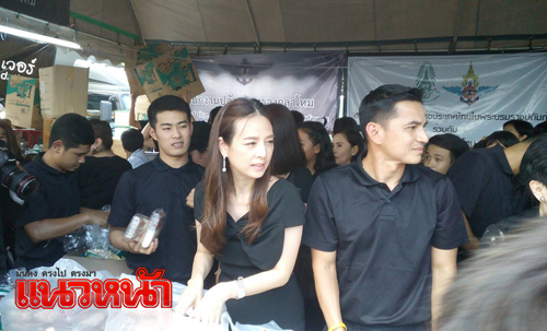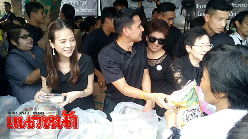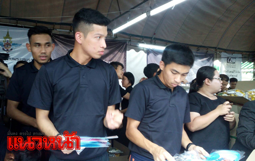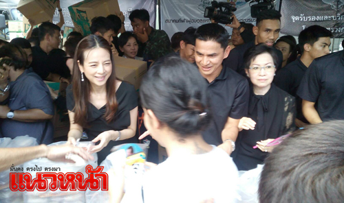 จากนั้น ได้เดินทางไปยังเต็นท์จิตอาสาของกองทัพบกเพื่อแจกจ่ายอาหาร เครื่องดื่ม และอื่นๆ แก่ประชาชนที่มาร่วมแสดงถวายความอาลัยพระบาทสมเด็จพระปรมินทรมหาภูมิพลอดุลยเดช โดยมีประชาชนเข้าแถวต่อคิวเป็นจำนวนมาก รวมถึงมีประชาชนมาคอยถ่ายรูปนักฟุตบอลในดวงใจขณะที่แจกจ่ายของอยู่