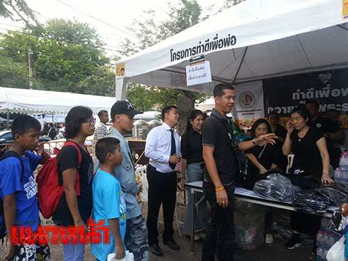 28 ต.ค. 59 โครงการทำดีเพื่อพ่อ ร่วมกับ กอ.รมน.กรุงเทพมหานคร นำเสื้อยืดคอกลมสีดำมาแจกจ่ายให้กับประชาชนที่มาร่วมแสดงความอาลัยพระบาทสมเด็จพระเจ้าอยู่หัวภูมิพลอดุลยเดช ที่เต๊นท์โครงการทำดีเพื่อพ่อ บริเวณตรงข้ามฝั่งประตูวิเศษไชยศรี พระบรมมหาราชวัง จำนวนกว่า700ตัว โดยมีประชาชนมาต่อแถวรอรับเสื้อเป็นจำนวนมาก
