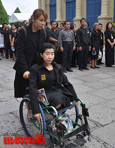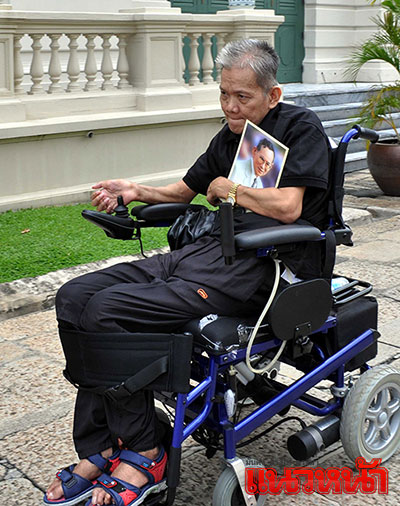 ด้าน นางฉลอง อยู่คงธรรม อายุ 81 ปี ชาวบ้านอำเภอบางเสาธง จ.สมุทรปราการ ซึ่งเดินทางมายังพระบรมมหาราชวังเพียงลำพังโดยรถเมล์ บอกเล่าถึงความรู้สึกที่ได้เข้าไปสักการะพระบรมศพ พระบาทสมเด็จพระปรมินทรมหาภูมิพลอดุลยเดชว่า ตนเดินทางมาเมื่อเวลาประมาณ 06.00 น. รู้สึกปลื้มใจมากจนน้ำตาแทบจะไหลที่ได้เข้าไปในพระบรมมหาราชวังเพื่อไปสักการะพระองค์ท่าน ทั้งนี้เมื่อก่อนตนเคยเป็นคณะกรรมการคัดเลือกพ่อดีเด่นและมายังสวนอัมพรทุกวันที่ 4 ธันวาคมของทุกปี เพื่อเป็นกรรมการคัดเลือกพ่อดีเด่น และเข้ารับเสด็จในหลวงรัชกาลที่ 9 อยู่บ่อยครั้ง