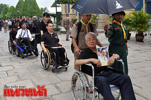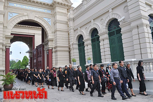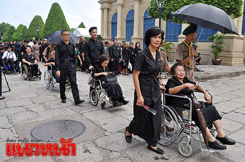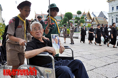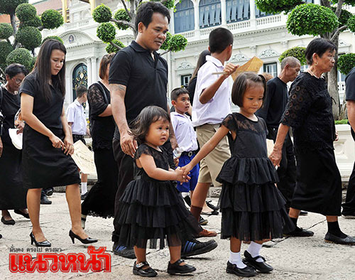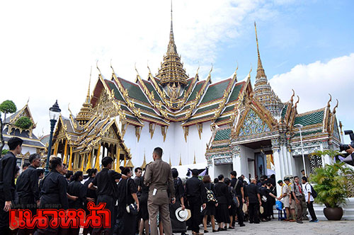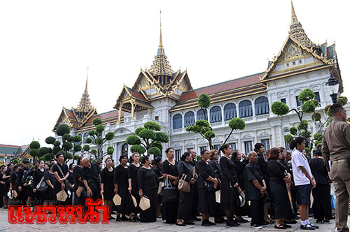 30 ต.ค.59 ที่ประตูวิเศษชัยศรี พระบรมมหาราชวัง ผู้สื่อข่าวรายงานว่า ประชาชนได้เดินทางมารอคิวเพื่อเข้าถวายบังคมพระบรมศพ พระบาทสมเด็จพระปรมินทรมหาภูมิพลอดุยเดช ซึ่งในวันนี้เป็นวันที่ 2 ที่สำนักพระราชวังเปิดให้เข้าสักการะเบื้องหน้าพระบรมโกศ โดยมีประชาชนมารอเพื่อเข้าไปในพระบรมมหาราชวังอย่างล้นหลาม