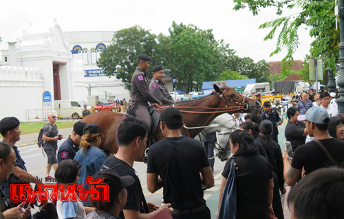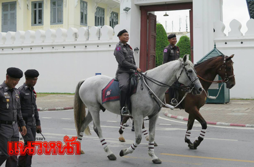 31 ต.ค.59 ผู้สื่อข่าวรายงานจากบริเวณถนนรอบพระบรมมหาราชวัง ได้มีเจ้าหน้าที่ สุนัข และม้า ออกปฎิบัติหน้าที่ เดินตรวจตราเพื่อป้องกันและรักษาความปลอดภัย รวมถึงเพื่อสร้างขวัญและกำลังใจให้พสกนิกรที่เดินทางเข้ามาสักการะและความอาลัยพระบาทสมเด็จพระปรมินทรมหาภูมิพลอดุลยเดช