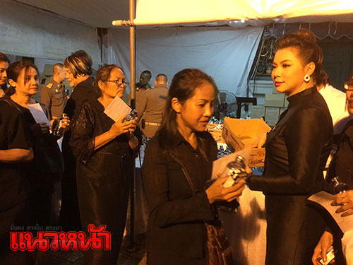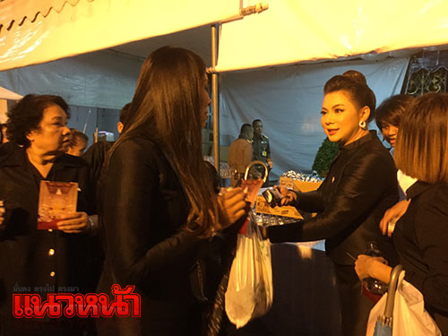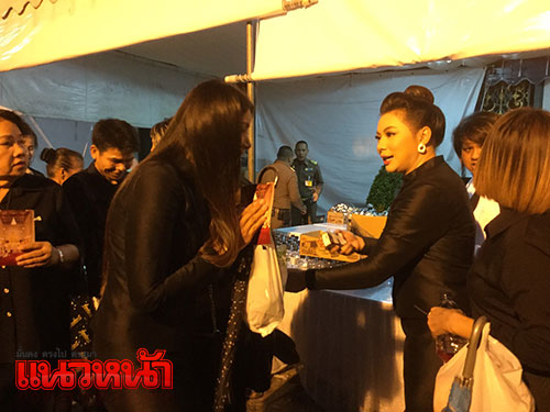 เมื่อเวลา 07.00 น. บุ๋ม ปนัดดา วงศ์ผู้ดี ประธานองค์กรทำดี ได้เดินทางมาแจกน้ำดื่มให้ประชาชนที่เต้นดอยคำ บุ๋มปนัดดา กล่าวว่า ถือเป็นความโชคดีที่ได้เกิดทันและได้เห็นพระองค์ท่านทรงปฏิบัติพระราชกรณียกิจมากมาย ท่านทรงเป็นแบบอย่างที่ดีของคนไทย ซึ่งตนเองก็มุ่งมั่นที่จะทำความดี ถึงแม้จะถูกมองว่าทำเพื่อปูทางให้กับตนเองก็จะพยายามอดทน เพราะพระองค์ท่านสอนไว้ว่าการทำความดีต้องอดทน อย่าย่อท้อ และดำเนินชีวิตก็ใช้จ่ายแบบพอเพียง อะไรที่ไม่สมควรซื้อก็จะไม่ซื้อมากไม่มีหนี้ชีวิตก็มีความสุข