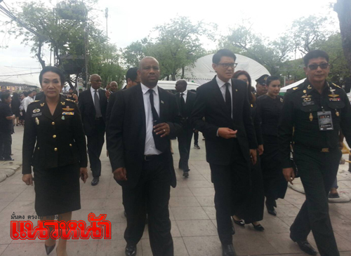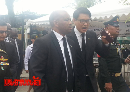 โดย รมต.ประจำสำนักนายกรัฐมนตรี ราชอาณาจักรเลโซโท กล่าวว่า รู้สึกดีที่ได้มามอบอาหารแก่ประชาชนชาวไทยที่มาแสดงความอาลัยต่อพระบาทสมเด็จพระปรมินทรมหาภูมิพลอดุลยเดช ประชาชนชาวเลโซโทรู้สึกเสียใจไม่ต่างกับชาวไทย ซึ่งสมเด็จพระราชาธิบดีมีความตั้งใจที่จะเดินทางมาตั้งแต่ทราบข่าวเสด็จสวรรคต แต่ติดขัดเรื่องเวลา แต่ก็เสด็จพระราชดำเนินมาถึงเมืองไทยแล้ว สำหรับโครงการพระราชดำริของพระบาทมเด็จพระปรมินทรมหาภูมิพลอดุลยเดช ที่ประเทศโลโซโท ได้นำไปใช้ในเรื่องที่เกี่ยวกับการเกษตร ปรากฏว่าประสบความสำเร็จ รวมถึงปรัชญาเศรษฐกิจพอเพียงและการทำการเกษตรแบบผสมผสนก็เช่นกัน