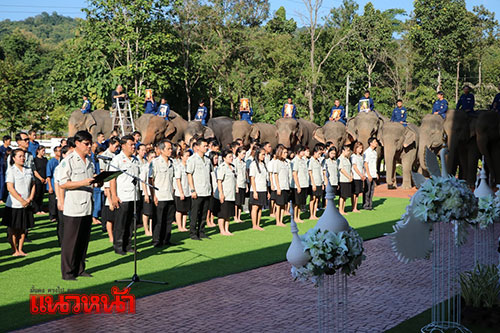 2 พ.ย.59 ผู้สื่อข่าวรายงานว่า นายสวัสดิ์ ตวงรัตน์หรดี ผู้อำนวยการสำนักสถาบันคชบาลแห่งชาติ ในพระอุปถัมภ์ฯ พร้อมด้วยพนักงาน ผู้ปฏิบัติงาน ควาญช้างและช้าง ร่วมแสดงความสำนึกในพระมหากรุณาธิคุณ และถวายอาลัยพระบาทสมเด็จพระปรมินทรมหาภูมิพลอดุลยเดช ณ อาคารกัลยาณิวัฒนาการุณย์ สถาบันคชบาลแห่งชาติฯ องค์การอุตสาหกรรมป่าไม้ อ.ห้างฉัตร จ.ลำปาง โดยนำช้างพลายปฐมสมภพ ซึ่งเป็นช้างที่พระบาทสมเด็จ พระปรมินทรมหาภูมิพลอดุลยเดช ทรงพระราชทานชื่อให้กับลูกช้างพลายที่เกิดจากการผสมเทียมด้วยน้ำเชื้อสด เชือกแรกของประเทศไทย และ ในเอเชีย เข้าหมอบกราบที่หน้าพระบรมฉายาลักษณ์ ผู้เข้าร่วมพิธีร่วมร้องเพลงสรรเสริญพระบารมี และ หมอบกราบหน้าพระบรมฉายาลักษณ์พระบาทสมเด็จพระปรมินทรมหาภูมิพลอดุลยเดช พร้อมกับช้างจำนวนกว่า 29 เชือก