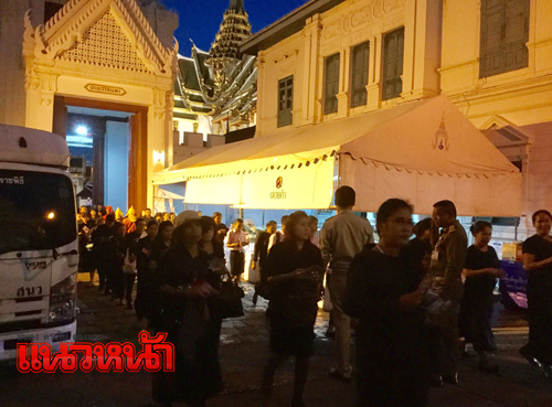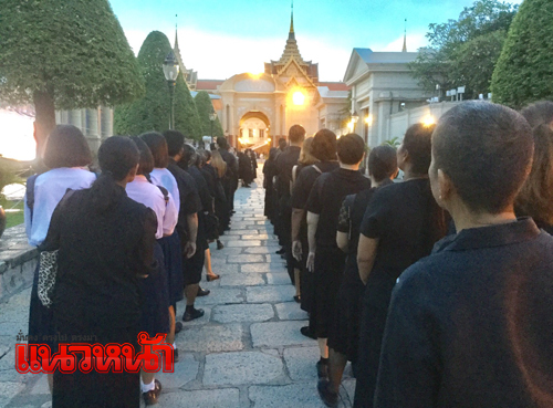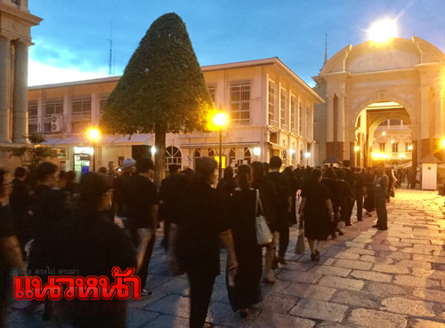 โดยวันนี้ เมื่อเวลา 05.00 น.เจ้าหน้าที่สำนักพระราชวัง ได้เปิดให้ประชาชนที่เดินทางมารอเข้ากราบสักการะพระบรมศพ เข้าทางประตูวิเศษไชยศรี ตามปกติ กระทั่งเวลา 08.30 น.ได้เปิดให้นักท่องเที่ยวต่างชาติเข้าชมความงดงามของวัดพระศรีรัตนศาสดาราม หรือวัดพระแก้ว เจ้าหน้าที่จึงได้เปลี่ยนให้ประชาชนที่เดินทางมากราบสักการะทางประตูมณีนพรัตน์ แล้วเดินตามทางพระระเบียงคด ภายในวัดพระศรีรัตนศาสดาราม ผ่านประตูศรีรัตนศาสดาราม เลี้ยวซ้ายเข้าสู่ถนนอมรวิถี หน้าพระที่นั่งอมรินทรวินิจฉัยมไหยสูรยพิมาน แล้วเลี้ยวขวาตั้งแถวบนถนนอมรวิถี หน้าพระที่นั่งจักรีมหาปราสาท เพื่อเข้าสู่พระที่นั่งดุสิตมหาปราสาท สถานที่ประดิษฐานพระบรมศพ