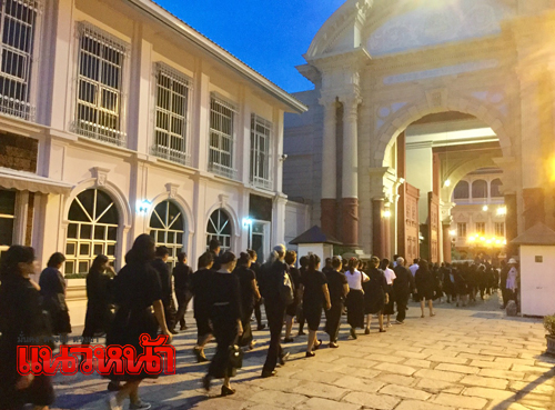 4 พ.ย.59 ผู้สื่อข่าวรายงานว่า นับเป็นวันที่ 7 ที่มีพระราชทานพระบรมราชานุญาตให้ประชาชนเข้าถวายสักการะพระบรมศพ พระบาทสมเด็จพระปรมินทรมหาภูมิพลอดุลยเดช เบื้องหน้าพระบรมโกศ ณ พระที่นั่งดุสิตมหาปราสาท ในพระบรมมหาราชวัง ได้ตั้งแต่เวลา 08.00 - 21.00 น.ทุกวัน (ยกเว้นช่วงมีพระราชพิธีบนพระที่นั่งดุสิตมหาปราสาท)
